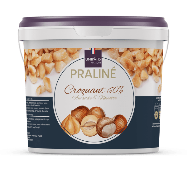 Praliné crujiente de almendra y avellana 60% (en francés)