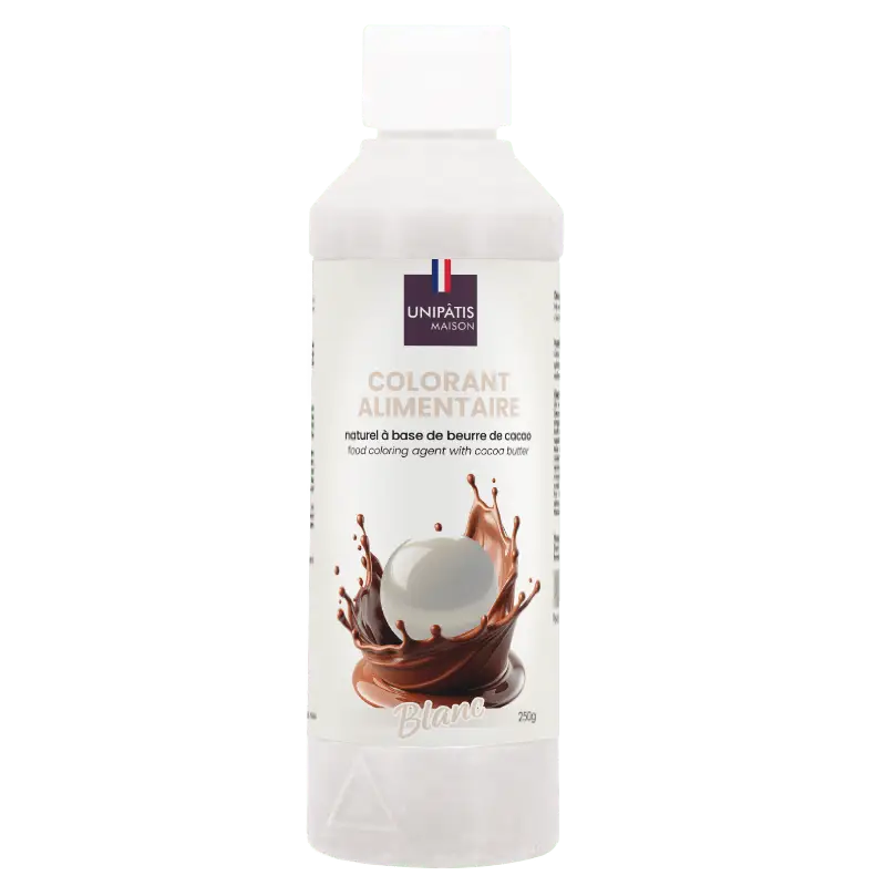 Colorant alimentaire à base de beurre de cacao coloré naturellement avec des extraits végétaux de carthame et spiruline