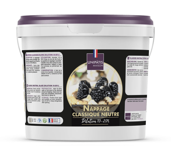 Le nappage neutre professionnel Unipatis est un produit incontournable pour tous les artisans de la pâtisserie. Ce nappage classique concentré à dilution 10-20% est spécialement conçu pour sublimer vos tartes aux fruits, gâteaux et desserts.