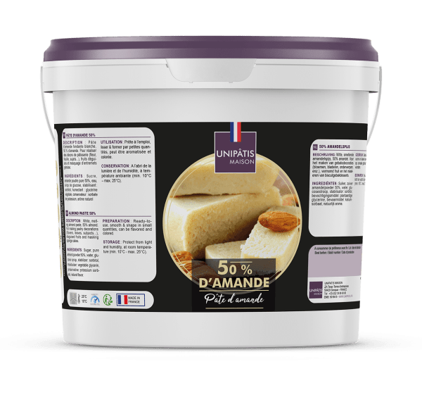 Pastă de migdale albă topită, 50% migdale. Pentru realizarea decorațiunilor de patiserie